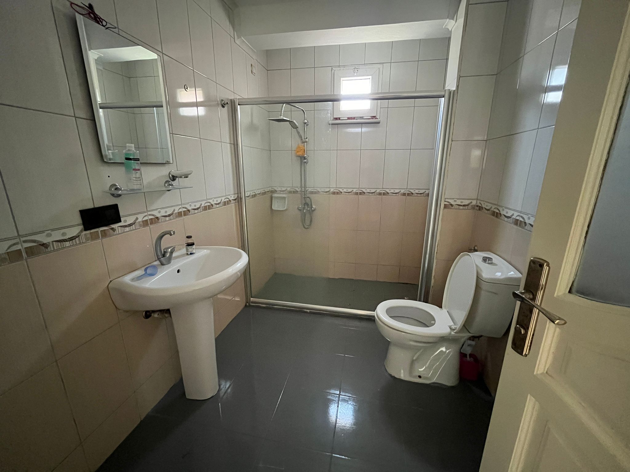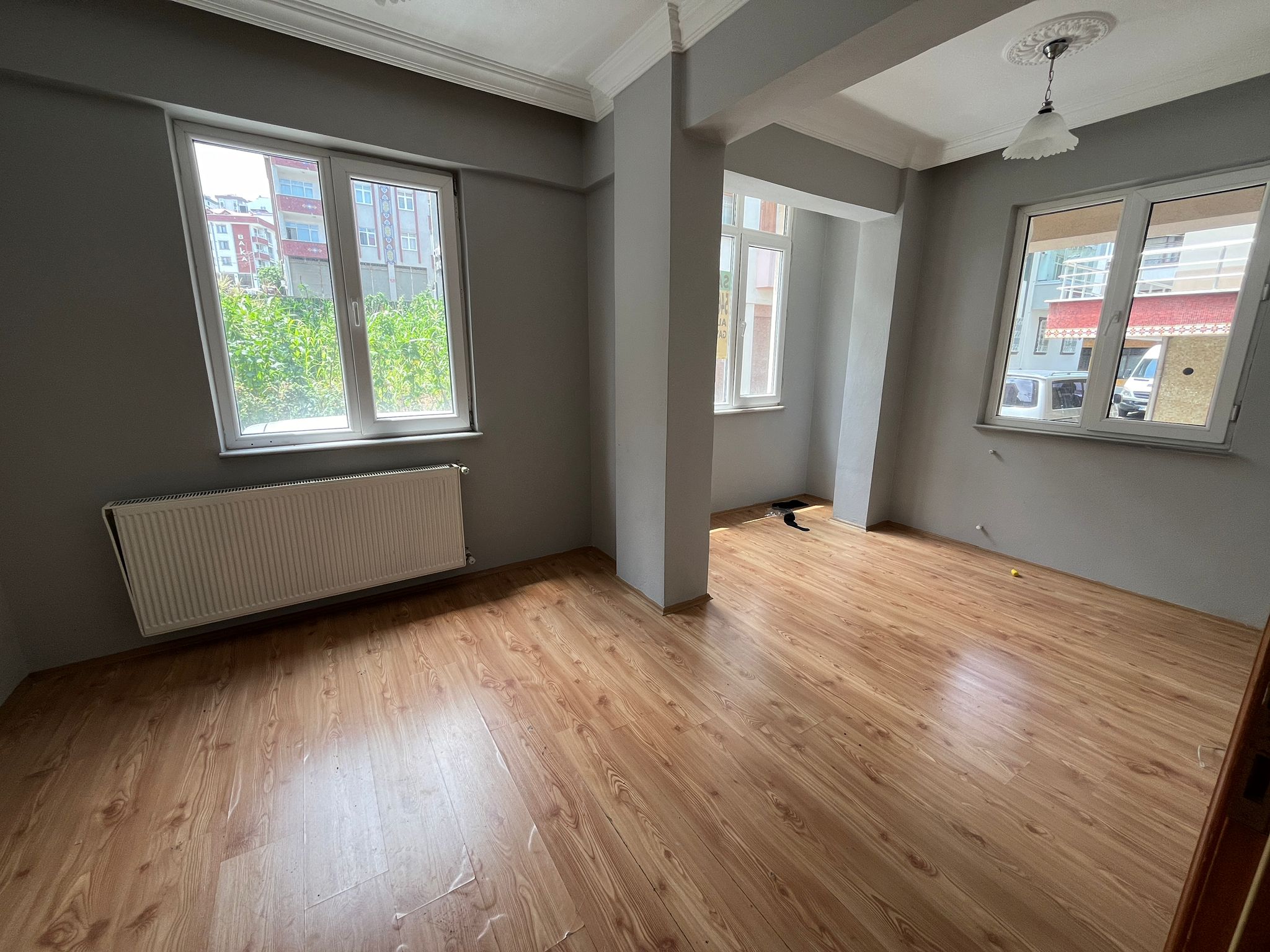 10-15 yıllık bir bina herhalde, yol kenarı olduğu için çok araba sesi ve toz var, ama kullanışlılık açısından iyi ve toplu taşımaya marketlere okula yakın